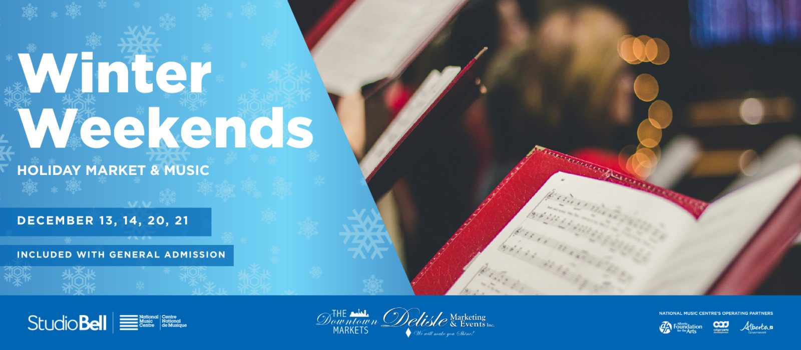 Experience the festive spirit at Studio Bell featuring a holiday market and music.